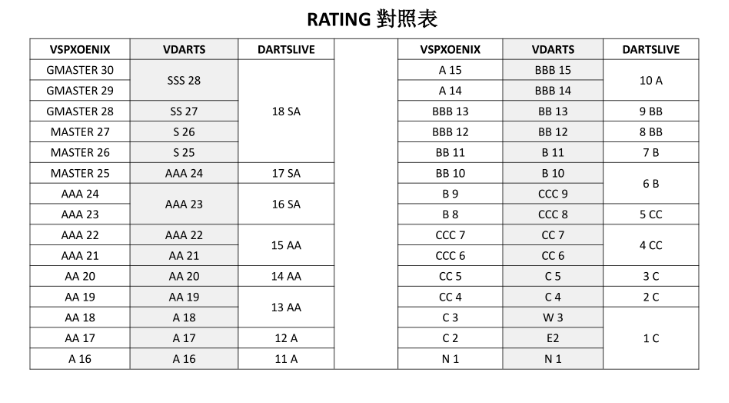 單人A組(VDarts Rating最高18)